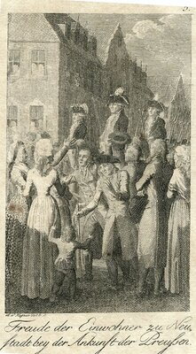 Freude der Einwohner zu Neustadt bei der Ankunft der Preußen