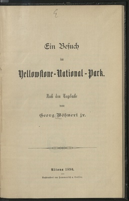 Ein Besuch im Yellowstone-National-Park : nach dem Tagebuche / Georg Wöhnert