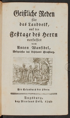 Geistliche Reden für das Landvolk auf die Festtage des Herrn / verfasset von Anton Wansidel, Weltpriester des Bißthums Straßburg.