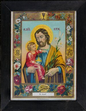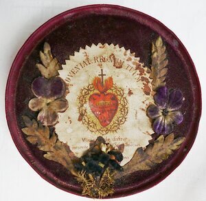 Medaillon mit Andachtsbild brennendes Herz als Ofenrohrbild