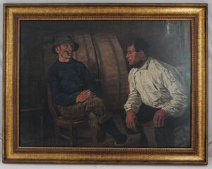Heinrich Lersch steht in Bodendorf/Ahr vor seiner Dichterklaus
