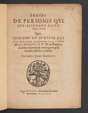 Theses De Personis Qvibvs Alienare Licet, Vel Non / Quas ... Svb praesidio ... Pauli Graseccii ... defendere conabitur Casparus Faber