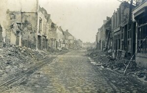 Fotopostkarte "Zerstörter Straßenzug von LaBassée in Frankreich"