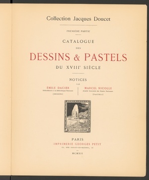 Catalogue des dessins & pastels du XVIIIe siècle, dont la vente aura lieu à Paris, Galerie George Petit ... le mecredi 5 juin 1912 ... / commissaires-priseurs F. Lair-Dubreuil ...