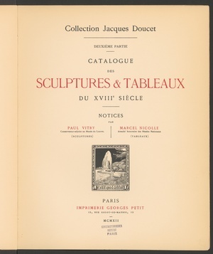Catalogue des sculptures & tableaux du XVIIIe siècle, dont la vente aura lieu à Paris, Galerie Georges Petit le jeudi 6 juin 1912 / commissaires-priseurs F. Lair-Dubreuil ...