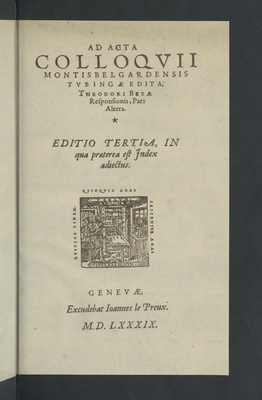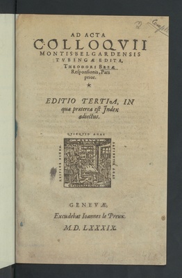 Ad Acta Colloqvii Montisbelgardensis Tvbingæ / ed. Theodori Bezæ Responsionis