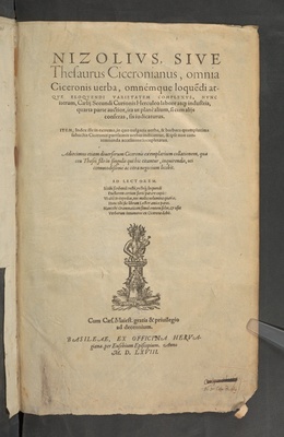 Nizolivs Sive Thesaurus Ciceronianus, omnia Ciceronis uerba omnemque loque[n]di atqve Eloqvendi Varietatem Complexvs