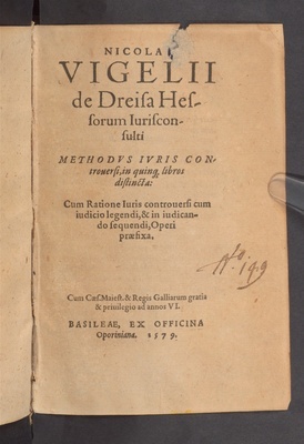 NICOLAI VIGELII de Dreisa Hessorum Iurisconsulti METHODVS IVRIS CONtrouersi, in quinque libros distincta: Cum Ratione Iuris controuersi cum iudicio legendi, & in iudicando sequendi, operi præfixa