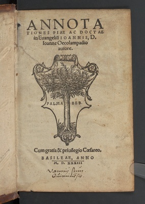 Annotationes Piae ac Doctae in Euangeliu[m] Ioannis, D. Ioanne Oecolampadio autore / [[Hrsg.:] Osualdus Myconius Lucernanus]