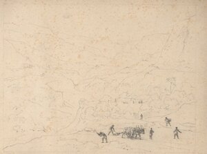 Landschaft mit Bauer und Kuhkarren bei Burrweiler