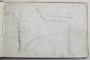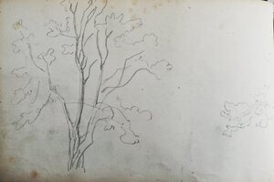 Skizzenbuchseite mit Baumstudien