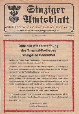 Bekanntmachung - Öffentliche Wiedereröffnung des Thermal-Freibades Sinzig-Bad Bodendorf