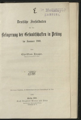 Deutsche Seesoldaten bei der Belagerung der Gesandtschaften in Peking : im Sommer 1900 / von Christian Rogge