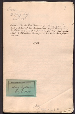 L 1245 - Beschwerde der Benediktiner zu Mainz gegen die theologische Fakultät der Universität wegen Verweigerung der Zulassung zur Doktor-Promotion für diejenigen, welche nicht die öffentlichen Vorlesungen an der Universität frequentiert haben. 7 Prod.