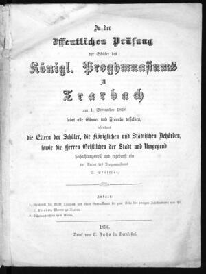Geschichte der Stadt Trarbach und ihres Gymnasiums bis zum Ende des vorigen Jahrhunderts / von Ph. L. Pfender