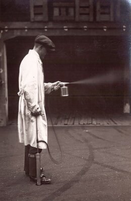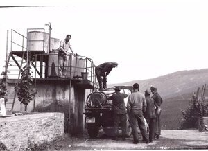 Foto Herr Dr. Niemeyer mit Gerät zum Stäuben im Weinberg