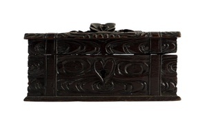 Aufwendig hergestelltes Holzkreuz mit christliche Kreuzigungsdarstellung