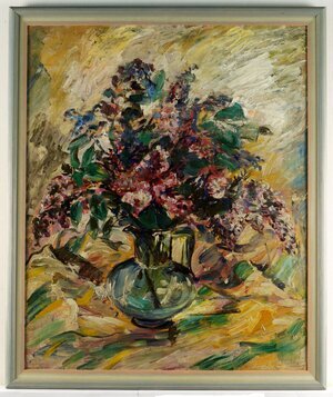 Blühende Fliederzweige in einer Glasvase