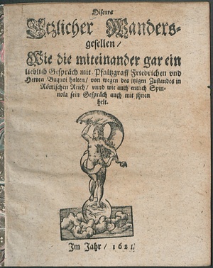 Discurs Etzlicher Wandersgesellen/ Wie die miteinander gar ein lieblich Gespräch mit Pfaltzgraff Friedrichen und Herren Buquoi halten/ von wegen des itzigen Zustandes in Römischen Reich/ unnd wie auch entlich Spinnola sein Gespräch auch mit ihnen helt