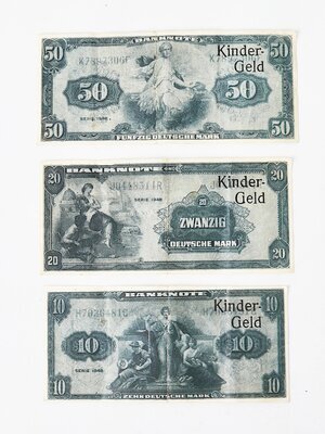3 Scheine Kindergeld 50 DM,. 20 DM, 10 DM