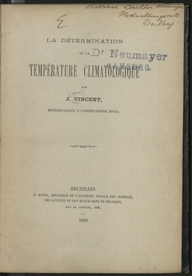 La Détermination de la température climatologique / J. Vincent