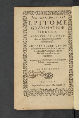 Johannis Buxtorfii epitome grammaticae Hebraeae : breviter et methodicè ad publicum scholarum usum proposita ; adjecta succincta de mutatione punctorum vocalium instructio et Psalmorum aliquot Hebraicorum Latina interpretatio ...