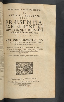 Fundamenta sanae doctrinae, de vera et substantiali praesentia, exhibitione et sumptione corporis et sanguinis Domini in Coena / repetita a Martina Chemnitio ...