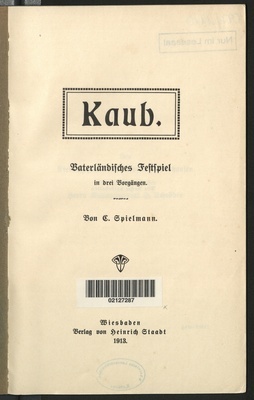 Kaub : vaterländisches Festspiel in drei Vorgängen / von C. Spielmann