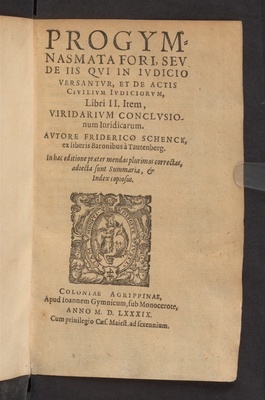Progymnasmata Fori, Sev De Iis Qvi In Ivdicio Versantvr, Et De Actis Civilivm Ivdiciorvm Libri II / Avtore Friderico Schenck, ex liberis Baronibus à Tautenberg