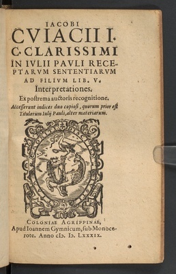 Iacobi Cviacii I. C. Clarissimi In Ivlii Pavli Receptarvm Sententiarvm Ad Filivm lib. V Interpretationes : accesserunt indices duo copiosi ...