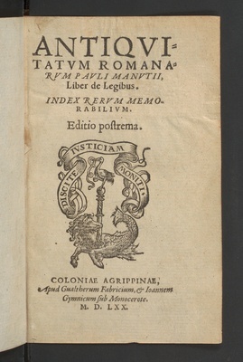 Antiqvitatvm Romanarvm Pavli Manvtii, Liber de Legibus : Index Rervm Memorabilivm