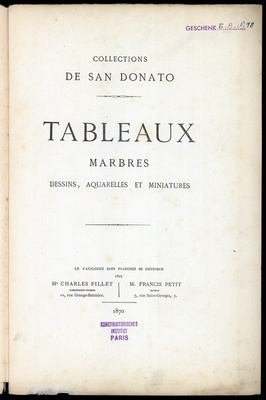 Tableaux : marbres : dessins, aquarelles et miniatures : collections de San Donato / commissaire-priseur: Charles Pillet ; expert Francis Petit