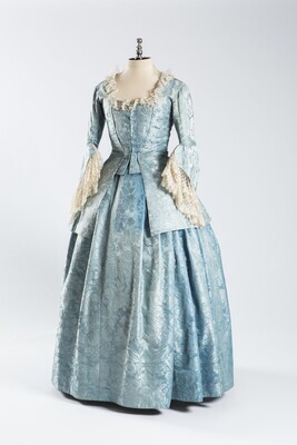 Graungrünes, hochgeschlossenes Damenkleid