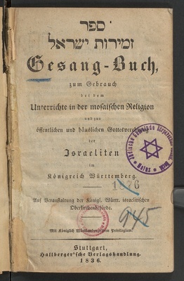 Gesang-Buch zum Gebrauch bei dem Unterrichte in der mosaischen Religion und zur öffentlichen und häuslichen Gottesverehrung der Israeliten im Königreich Württemberg