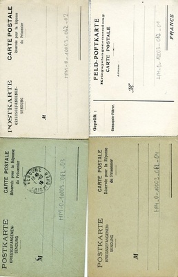 4 unbeschriftete deutsch-französische Kriegspostkarten
