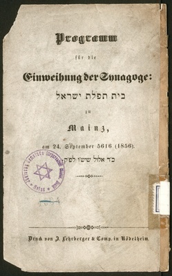 Programm für die Einweihung der Synagoge Bet Tefillat Yisra'el : Mainz am 24. Mai 5616 (1856)