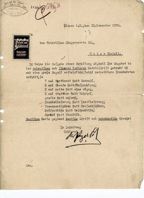 Brief Trierischen Winzerverein an Notar Petzold, Plauen (1926)
