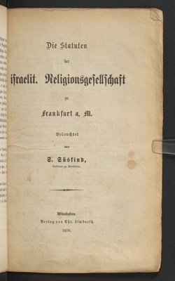 Die Statuten der israelit. Religionsgesellschaft zu Frankfurt a. M. / beleuchtet von S. Süskind, Rabbiner zu Wiesbaden