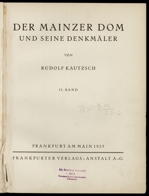 In: Der Mainzer Dom und seine Denkmäler ; Band Teil 2
