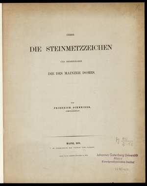 Ueber die Steinmetzzeichen und insbesondere die des Mainzer Domes / Friedrich Schneider