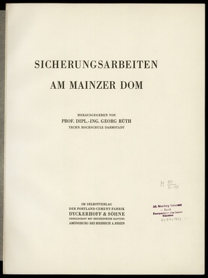 Sicherungsarbeiten am Mainzer Dom / hrsg. von Georg Rüth