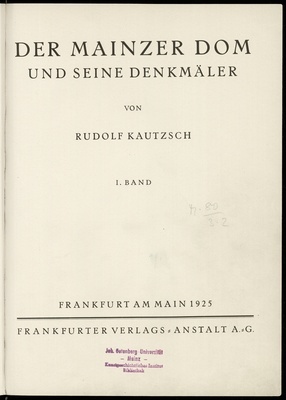 In: Der Mainzer Dom und seine Denkmäler ; Band Teil 1