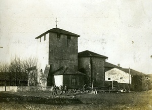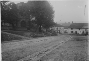 Bleistiftzeichnung Blick von Dorfplatz in Richtung Kirche Bad Bodendorf von 1916