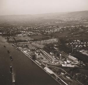 Luftaufnahme Rheinhafen Bendorf, Dr. Otto, Schwemmsteinfabriken 1961