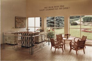 Druckvorlage für Ansichtskarte Thermalschwimmbad Bad Sinzig mit braunem Wasser in Schwimmbecken