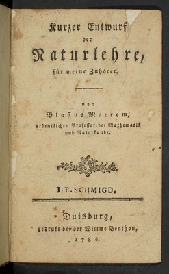Kurzer Entwurf der Naturlehre, für meine Zuhörer / von Blasius Merrem, ordentlichen Professor der Mathematik und Naturkunde