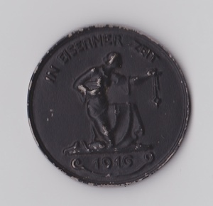 Weihwasserkesselchen mit Abzeichen der Wallfahrt zum heiligen Rock in Trier 1933