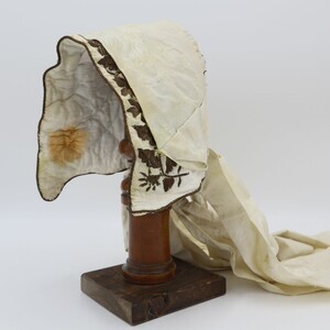 Wattierte Weiße Trachtenhaube mit Goldener Bouillonstickerei und Cremefarbenen Bändern