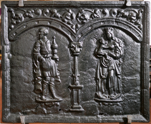 Takenplatte oder Kaminplatte mit Heiligenfiguren