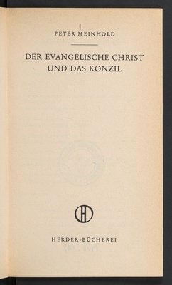 Der evangelische Christ und das Konzil : [Was erwarten evangelische Christen vom Konzil? Steht Luther im Wege? Die christliche Ökumene - Einheit des Zeugnisses] / Peter Meinhold